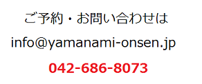 神奈川中央交通バス 藤野駅より「やまなみ温泉」行 15分 「やまなみ温泉入口」下車 徒歩2分 270円(IC270円)