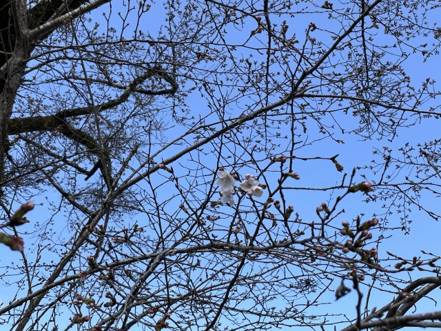 露天の桜が開花しました。